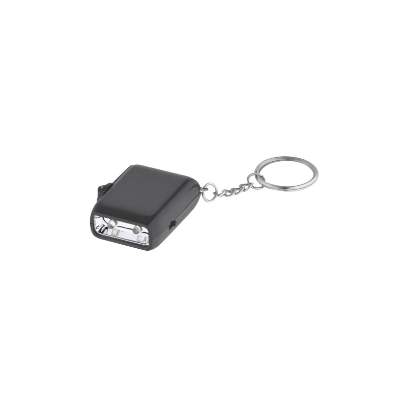 Llavero-Linterna 2-LED con Dínamo. Recargable por fricción mediante giro de la manivela.