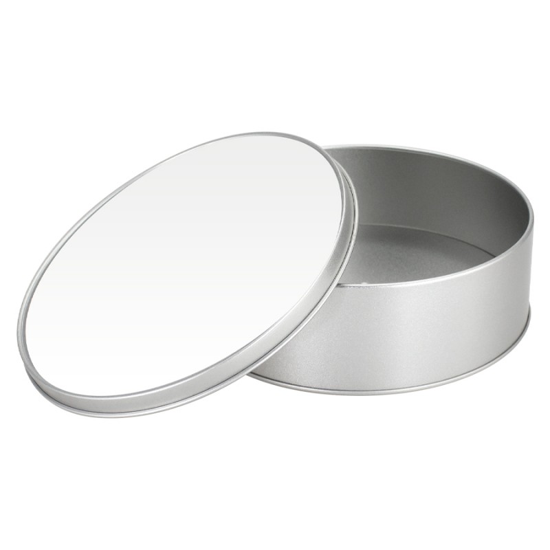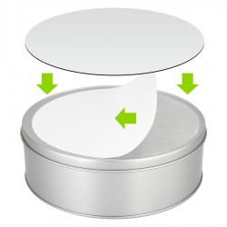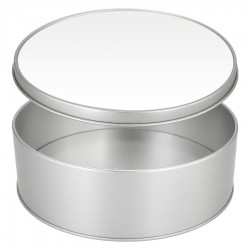 Caja Metálica redonda, con tapa y cubierta blanca para Sublimación. Presentación en bolsa de Polipropileno + caja de cartón forrado color natural. Ideal para usar como joyero, especiero o guarda-accesorios. Un regalo práctico y delicado para cualquier mujer.