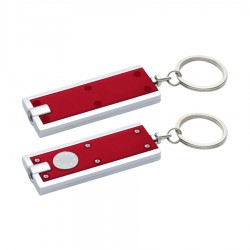 Llavero-Linterna de 1 LED, con cuerpo plástico frozen y botón pulsador plateado. Presentación en cajita plateada.