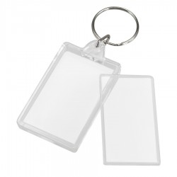 Llavero porta-foto de Acrílico transparente. Para insertar papel impreso en compartimento interior.