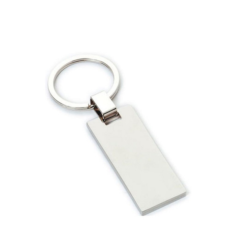 Llavero Metálico Rectangular Plano. Presentación en estuche laminado negro con cuna aterciopelada.