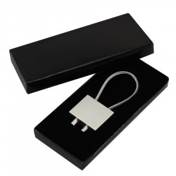 Llavero Metálico modelo «Candado». Presentación en estuche laminado negro con cuna aterciopelada.