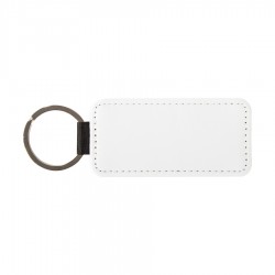Llavero rectangular de PU blanco para sublimación. Reverso capa PU negro con brillo (no sublimable). Argolla de Acero inoxidable.