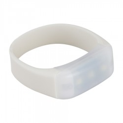 Pulsera de Silicona blanca, con 3 luces LED blancas. Función luminosa fija y estroboscópica. Ideal para deportistas. Presentación en cajita de cartulina blanca.