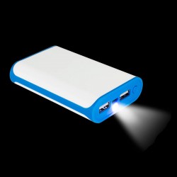 Cargador Power-Bank USB modelo «Earth» con indicador de carga y linterna LED. Capacidad 6000mAh. Amplio espacio para logo. Input: DC 5V 1A / Output: DC 5V 2.1A. Incluye cable de carga USB/micro USB. Presentación en Estuche de Cartón blanco con colgador para ganchera.