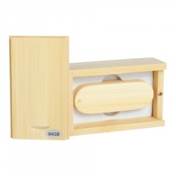 Deluxe USB Pendrive 3.0 de 64GB de capacidad, 100% en madera de Bamboo, con carcasa giratoria. Presentación en elegante estuche de madera de Bamboo.