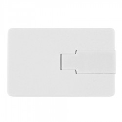 Pendrive memoria de 64GB, forma y tamaño Tarjeta de Crédito 100% blanco, con USB twist-system. Presentación en elegante estuche de plástico translúcido, dentro de cuna de esponja EVA blanca.