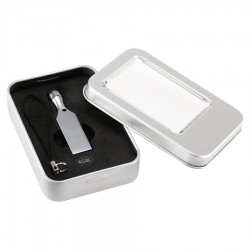 Pen Drive metálico de 4 GB de capacidad, con puntero Touch-Screen y cordón para colgar. Presentación en estuche de Aluminio con ventana.