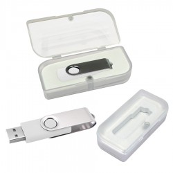 USB Pendrive con carcasa metálica de giro, de 16 GB de capacidad. Presentación en caja de PVC traslúcido.