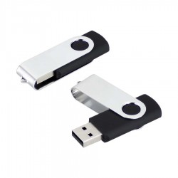 USB Pendrive 2.0 con 32GB de memoria, con carcasa metálica de giro. Presentación en caja de PVC translúcido.