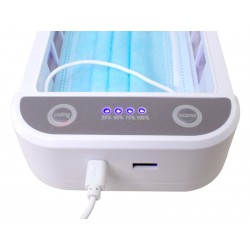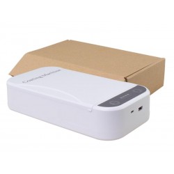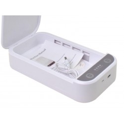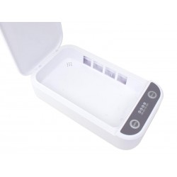 USB Caja Esterilizador UV portátil de color blanco, esterilización rápida y eficaz, eliminando bacterias en 3 minutos, se pueden desinfectar: celular, llaves, joyas, tarjetas bancarias y otros artículos pequeños. Contiene 2 tipos de rayos ultravioleta, basta con conectarlo a un puerto USB. A su vez, se puede agregar algunas gotas de esencia en los orificios interiores, para acompañar con un suave aroma mientras se esterilizan tus artículos de uso personal.