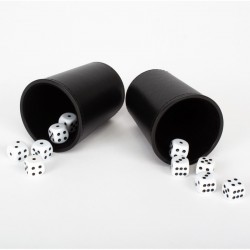 Set de 6 cachos de PU negro, presentados en bolsa. Incluye 30 dados blancos (5 dados por cada cacho).