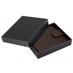 Deluxe Billetera de cuero natural Marrón con broche. Finas terminaciones. 17 compartimentos interiores (3 secciones). Alta resistencia al uso. Presentación en bolsa frozen y caja de cartón forrado negro texturado.