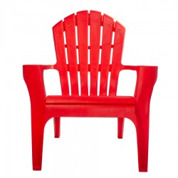 Silla Plástica modelo «Adirondack» de Polipropileno de una sola pieza, con topes anti-deslizantes en las 4 patas. Ideal para terrazas, jardines, playa o eventos. Puede usarse tanto en interiores como en exterior. Su respaldo sólido (sin líneas) y estructura compacta la hacen muy resistente, resiste sobre 150kg. Es muy liviana, pesa sólo 4kgs. y como es apilable, es muy fácil de trasladar y guardar en cantidades grandes. Fácil de lavar. Producto importado de calidad superior.