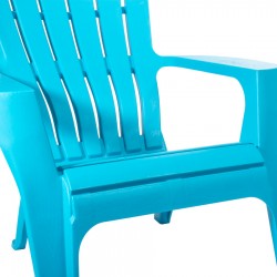 Silla Plástica modelo «Adirondack» de Polipropileno de una sola pieza, con topes anti-deslizantes en las 4 patas. Ideal para terrazas, jardines, playa o eventos. Puede usarse tanto en interiores como en exterior. Su respaldo sólido (sin líneas) y estructura compacta la hacen muy resistente, resiste sobre 150kg. Es muy liviana, pesa sólo 4kgs. y como es apilable, es muy fácil de trasladar y guardar en cantidades grandes. Fácil de lavar. Producto importado de calidad superior.