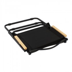 Silla de Camping y Playa de lona, tela Oxford 600D raquelada y base plegable de Acero negro de 20 x 15 x 1mm, con apoya-brazos de madera de Haya. Un práctico producto para ir de camping o a la playa.