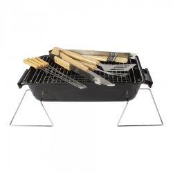 Bolso de Viaje 4-en-1. Incluye bolso, cooler, parrilla y 9 herramientas BBQ con mango de madera. Ideal para viajes, camping y picnic.