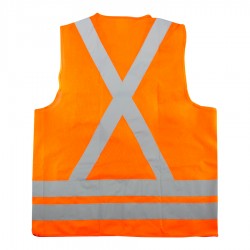 Chaleco Reflectante de Seguridad modelo «Supervisor», 100% tela poliéster 120 g/m2 fluorescente con bandas reflectantes color plateado de 5 cm. de ancho. Incluye 4 bolsillos y cierre-eclair. Cumple con norma legal vigente EN 471.