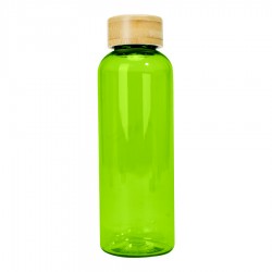 Botella plástica PET color translúcido, con tapa redonda twist-off de Bamboo, modelo «AINOA». Producto BPA FREE, para el contacto con líquidos y alimentos. Capacidad 550ml. Presentación en bolsa OPP + caja de regalo de cartón kraft.