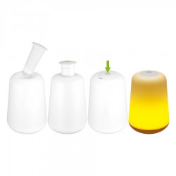 Lámpara de sobremesa de luz cálida amarilla, con luz LED removible. Usa 3 pilas AAA (no incluidas). Gran superficie de impresión. Presentación en caja de regalo de cartón blanco.