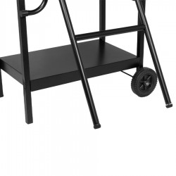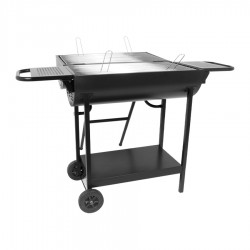 Parrilla doble a Carbón de Acero negro, modelo «Andes». Altura para cocinar: 80cm. Rejillas cromadas para cocinar: 2 unidades x 69.5 x 37cm x 4mm. Tapa: 74.5 x 40 x 20cm. Bowl para fuego: 74.5 x 40 x 20cm. Bandejas laterales: 2 unidades x 34 x 27.8cm. Incluye Manual instructivo de armado en español.
