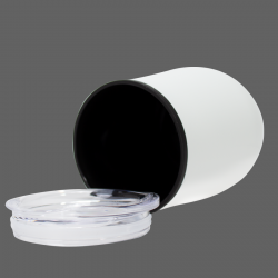 Mug metálico doble pared aislante, interior plástico PP, exterior Acero inoxidable 201 SS, recubierto con pintura POWDER COAT, modelo «SYNNA». Producto BPA FREE, para el contacto con líquidos y alimentos. Fondo de silicona negra ABS anti-deslizante. Tapa removible de plástico PS Crystal Clear con sello cilíndrico de silicona. Capacidad 350ml. Presentación en bolsa PP + caja de regalo de cartón negro.