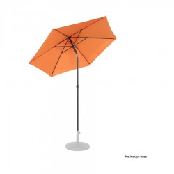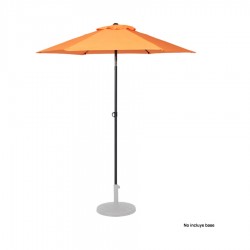 Quitasol redondo de Ø2m, modelo «Twist», con 6 cascos de lona Poliéster UV impermeable de 160g. Contiene varas reforzadas de Acero recubierto de 12 x 18mm, asta de Acero recubierto de 32mm, sistema de apertura manual y codo giratorio de 45°. No incluye base.