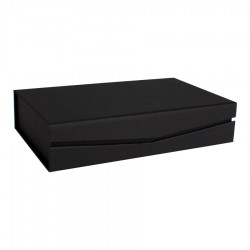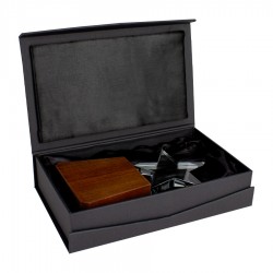 •Presentación: Caja de cartón forrado negro con cierre imantado, interior acolchado de espuma y tela poliéster satinado negro, con troquel.