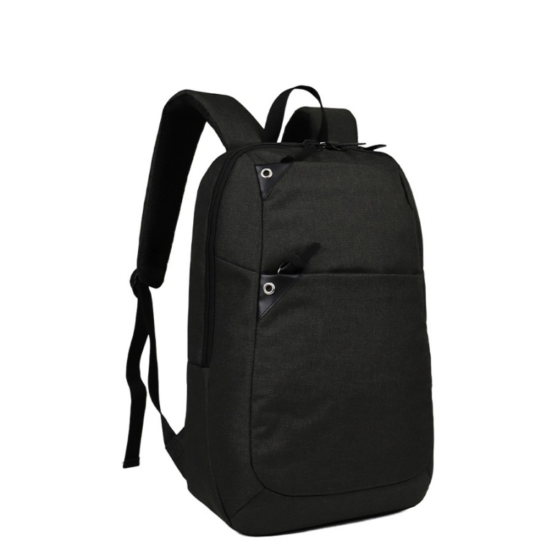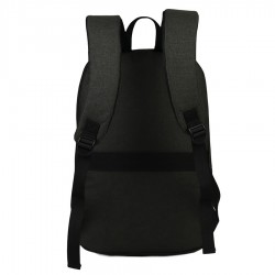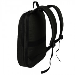 Mochila Porta-Notebook modelo «WALKER». Fabricada en tela poliéster 600D/PVC bitono, con detalles y tiradores en eco-cuero PU 210D. Capacidad 15 litros, tamaño 30 x 43 x 12 cm. Contiene 2 compartimentos interiores forrados en nylon, cuerpo completo: uno posterior (de seguridad) y otro central, ambos reforzados y acolchados para Laptop, además de 2 compartimentos (bolsillos) delanteros para aplicación de logo. En su parte posterior, contiene correa de PVC para anexar la mochila a carro de arrastre de maleta.