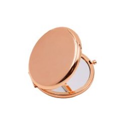 Útil y elegante espejo encobrizado con tapa, perfecto para llevar en la cartera. Presentación en caja de cartón negra.