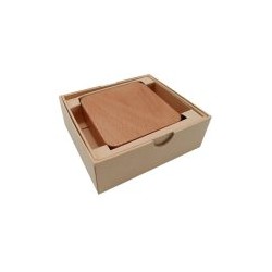 Batería externa cuadrada de madera de bambú. Capacidad de 4.000 mAh. Presentado en estuche de cartón reciclado duro.