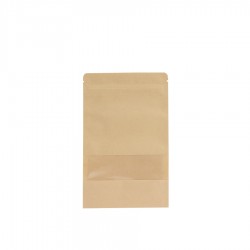 Bolsa hermética reutilizable, para guardar alimentos, fabricada en papel Kraft color natural, con protección interior PET + CPP (Cera Polipropileno), lo que permite guardar y conservar alimentos por más tiempo, y sin riesgo que la humedad o el polvo dañen los alimentos. Este producto es biodegradable, inofensivo para el medio ambiente y no tóxico para la salud humana. Contiene ventana plástica transparente para visualización interior. Sistema de cierre hermético reutilizable «Smart Zipper». Cuenta con fuelle inferior, lo que permite poner la bolsa de pie.