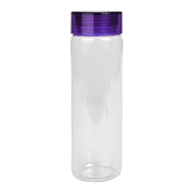 Botella plástica PET translúcido, con tapa redonda twist-off PET de color, modelo «LOUIS». Producto BPA FREE, para el contacto con líquidos y alimentos. Capacidad 600ml. Presentación en bolsa OPP + caja de regalo de cartón kraft.