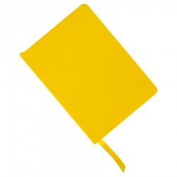 Cuaderno tamaño A5, con cubierta de PU eco-cuero de 2mm de espesor y lomo pintado de color al tono. Interior 80 hojas lineadas amarillas de 80gsm. Incluye banda separador de hojas al tono. Presentación individual en bolsa de polipropileno.