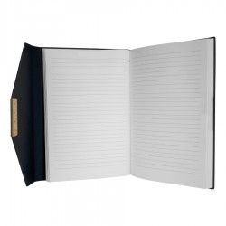 Deluxe Cuaderno tamaño A5 modelo «ENVELOPE», con tapas duras de cartón forrado en PU eco-cuero, con 80 hojas lineadas blancas. Contiene cierre metálico imantado color dorado.
