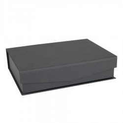 Elegante Trofeo Galvano de Cristal modelo «Syntec». Presentación en caja de cartón forrado negro con cierre imantado, interior acolchado de espuma y tela poliéster satinado negro, con troquel.