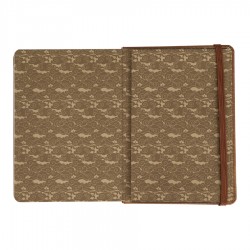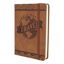 Agenda de Viaje tamaño B6 modelo «TRAVEL JOURNAL», con tapas duras forradas en PU eco-cuero, interior 90 finas hojas amarillas lineadas, con datos relevantes para tus viajes. Contiene elástico para cierre. Y banda separador de hojas color marrón.