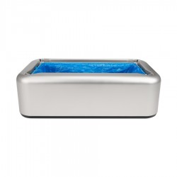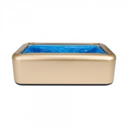 Dispensador de plástico ABS con estructura metálica, para Cubre-Calzado industrial. En cada pisada, entrega cobertor bolsa plástica de PE azul, ideal para mantener el calzado protegido de virus y bacterias en ambientes protegidos. Cada dispensador viene con 10 bolsas protectoras de calzado de PE (R18) de regalo, que se adhiere al calzado en forma automática en cada pisada dentro del dispensador.