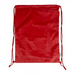 Mochila tipo Morral, fabricada en tela reciclada RPET, con tiras de cordón también el tela reciclada RPET .