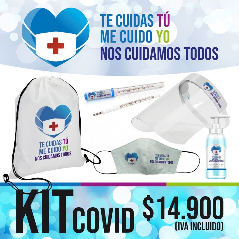 Morral de tela + Mascarilla lavable + Protector Facial - Termometro oral mercurio + Alcohol gel 220 ml.