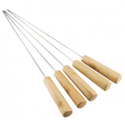 Set de 5 fierros para anticuchos con mango de madera, en estuche de tela raquelada. Fácil para bordar o imprimir.