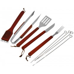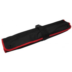 Delantal de tela raquelada negra con 9 prácticas herramientas para asado. Plegable y transformable en bolso. Fácil para bordar o imprimir.