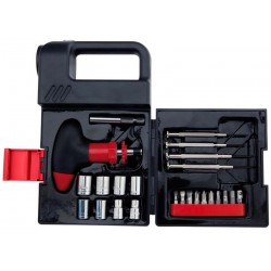 Set de 24 Herramientas modelo "Lemans". Incluye Linterna 4 LED, en plástico ABS negro.