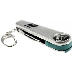 Cortaplumas de Golf de Acero Inoxidable con 7 funciones. Incluye Cuchillo, Levanta-Pique corto, Levanta-Pique largo, Cepillo, Bolígrafo tinta negra, Marcador magnético y llavero. Presentación en caja de regalo plateada.
