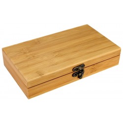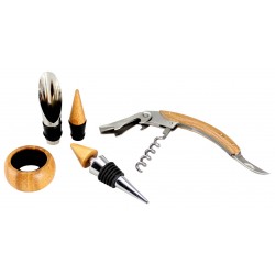 Deluxe Set de 4 accesorios para el vino, en caja 100% madera Bamboo, con cierre mosquetón envejecido.