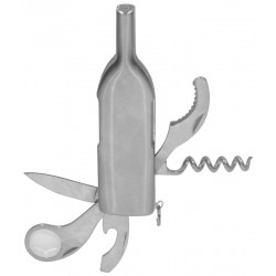 Herramienta para vinos multifunción de acero inoxidable con forma de botella Incluye descorchador, destapador, lupa, cuchillo, abresellos y argolla