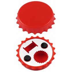 Destapador y Abridor de tapas twist-off, con forma de tapa de botella. Imantado para refigerador.