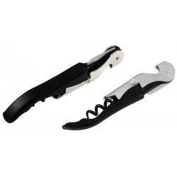 Descorchador profesional "Sommelier" de 2 tiempos de Acero Inoxidable con cubierta y tirabuzón de teflón. Presentación en caja de cartón plateada.