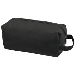 Necessaire rectangular de microfibra negra. Terminaciones en simil cuero negro.