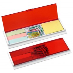 Porta notas adhesivas con clips de colores. Incluye 1 taco de notas adhesivas de 40 hojas de 4,8 x 3,6 cm + 3 tacos de 25 banderitas adhesivas de 4,8 x 1,2 cm + 10 clips recubiertos de colores. Regla de 14 cm y de 5,5".